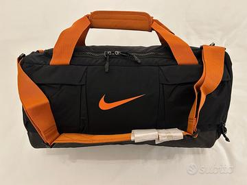Vendo borsa da palestra Nike marchiata Virgin, nera con manici arancioni, vari scomparti interni tra cui uno apposito per le scarpe, capacità 37 l, ottima qualità, nuova (assolutamente mai usata), ritiro o spedizione a carico del compratore.