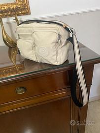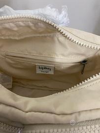 Borsa color panna di Kipling lunga 24 cm profonda, 10, tracolla tre cerniere esterne, una interna