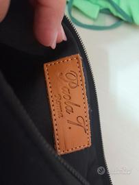 Borsa Paola T con logo con brillantini. Dotata di tracolla e zip. Tessuto in neoprene. Mai utilizzata.