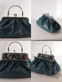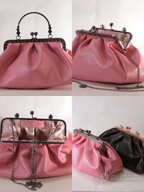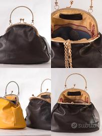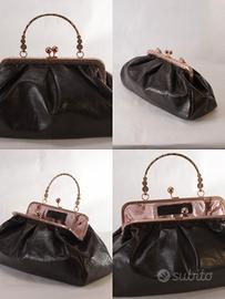 borsa in vera pelle nappata, manifattura artigianale, con struttura metallica, con catena per tracolla. La borsa è foderata al suo interno, si presenta ben strutturata ma morbida all'esterno.