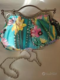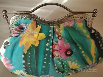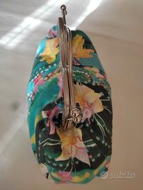 borsa con chiusura clic clac, in tessuto, con fodera interna e catenina.