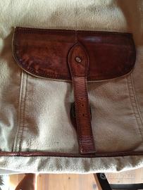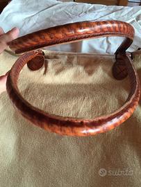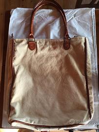 borsa in tela con rifiniture in similpelle, come nuova interno in tessuto a righe