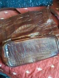 Borsa firmata, donna, a spalla o a mano. Vera pelle stampata in rilievo tipo coccodrillo.