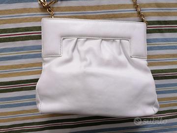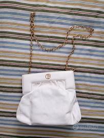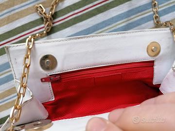 Bella borsetta a tracolla in pelle di Nazareno Gabriello colore bianca con interno color rosso.