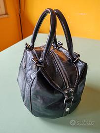 Borsa di pelle nera morbidacon maniglie e anelli per eventuale tracolla, non compresa. Molto comoda e capiente. Misure: Lung 33cm Alt 38cm Larg 22cm