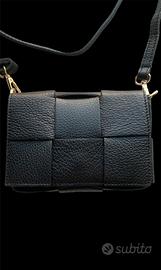 Splendida ed elegante borsetta in pelle nera realizzata in modo artigianale con un disegno molto bello.