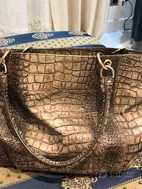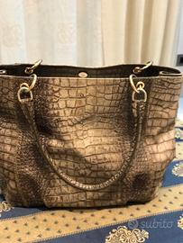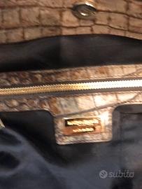 Borsa donna in pelle pitonata Marina Rinaldi, indossabile a mano e a spalla, apribile ai lati con maggiore capienza con due automatici,misure cm 46x30x22