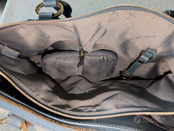 La tracolla, oltre ad essere regolabile, ha il particolare gancio che ruota mantenendo la borsa sempre dritta in spalla.