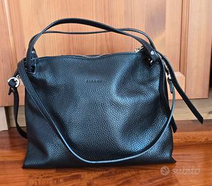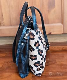 La borsa è nuova, mai indossata e conservata nella sua dustbag. Due facce diverse, una in cavallino e l'altra in pelle martellata con discreto logo inciso. Presenta tracolla removibile, manici, tasche interne, ottime rifiniture, ottima qualità.