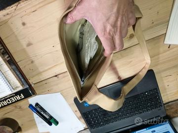 Vendo borsa di colore chiaro in pelle e pochette praticamente nuova ancora con etichetta marca Premiere. euro 10 cadauno