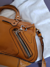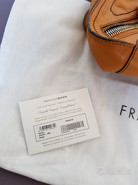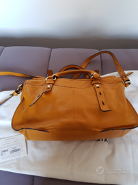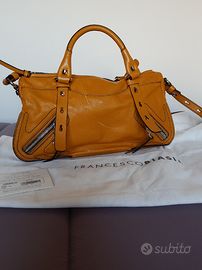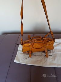 Borsa in pelle giallo senape di Francesco Biasia con manici e tracolla per inutilizzo.