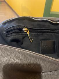 Shopper bag in pelle grigia morbidissima con doppia tracolla originale.