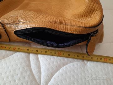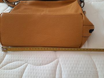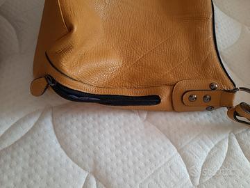 borsa artigianale in pelle martellata colore senape.