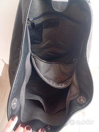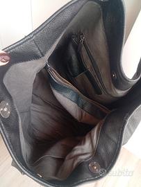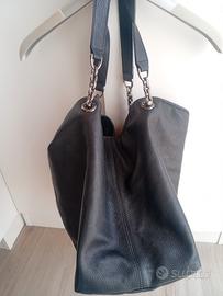 borsa da donna ampia. nera in vera pelle. ben tenuta . con tre ampi scompartimenti, quello centrale con cerniera. cerniere e catenina in acciaio leggero cromato. vendo per inutilizzo.
