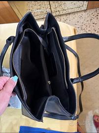 - Realizzata in pelle nera e pelo di cavallino blu.
