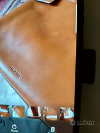 Vendo borsa di pelle nocciola di Prada. La borsa misura cm36x29x12. È dotata di manici che consentono di indossarla a mano o a spalla. Ha 3 scomparti interni di cui uno chiuso da una lampo, lampo che prosegue su entrambi i lati. Completa la chiusura laterale un lucchetto di metallo argentato (marchiato con il logo).