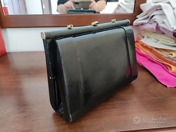borsa in pelle di serpente, colore nero, anni 60, in buono stato, con manico corto o possibilità di catena a tracolla