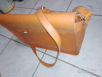Borsa da donna , tipo a cartella tracolla lunga , di pelle color marrone arancione dimensioni 37x30x12 cm
