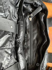 Borsa Pennyblack nera capiente con cerniera interna e doppia tasca portaoggett. In tessuto lucido lavabile