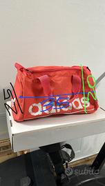 Borsa sportiva marchio ADIDAS originale come da etichette in foto. Il colore è più sul rosa, non così arancione come in foto. Presenta sbadimento sulla cerniera dato dal tempo e dall'utilizzo e piccole macchie lavabili.