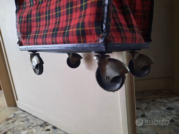 Borsa scozzese di tessuto robusto arrotolabile con 4 rotelle e maniglie.