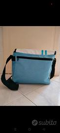 Borsa per libri tracolla con 2 strap sul davanti , taschini interno con cerniera di 14 x 11 cm e tasca grande con cerniera sul retro.