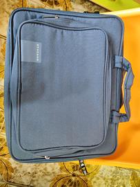 borsa per pc Tucano; colore: azzurro; la borsa è dotata di numerose tasche esterne e interne, di una cintura per agganciare il pc e di tracolla removibile; presenta numerosi scomparti.
