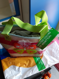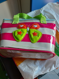 Borsa per ragazza trasparente con al centro una farfalla , ha due fasce di colori fucsia, della Benetton .
