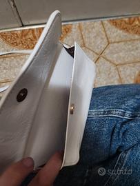 borsa bianca,larga 19 cm e alta 13 cm,con laccio staccabile