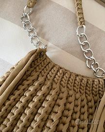 Borsa realizzata all'uncinetto con fettuccia...realizzata personalmente