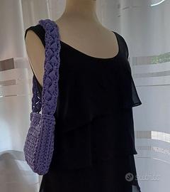 Borsa a spalla di piccole dimesioni non rigida, realizzata a mano all’uncinetto.