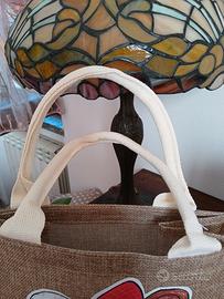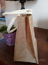 Borsa 24x24 juta con manici panna Disegno realizzato a mano stampato su carta termoadesiva e trasferito con termopressa