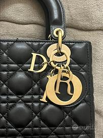 La borsa Lady Dior My ABCDior è la quintessenza dello stile raffinato della Maison. Elegante e ricercata grazie al suo fascino intramontabile, è realizzata in pelle di agnello nera con cuciture Cannage che creano l’iconica trama trapuntata e impreziosita dai ciondoli D.I.O.R. in smalto color ORO. Caratterizzata da piccole dimensioni, può essere portata a mano o crossbody grazie alla tracolla personalizzabile con diversi ornamenti, in questo caso (I ❤️ Y)