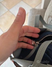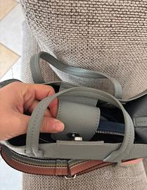 È composta da una borsa esterna grigia con chiusura a bottone magnetico e da un borsello interno rimovibile.