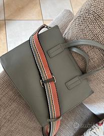 Sono incluse due tracolle, una colorata e una grigia, entrambe intercambiabili e agganciabili a piacere sia alla borsa esterna sia al borsello interno, per adattarla alle proprie esigenze e allo stile desiderato.