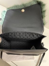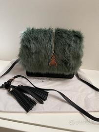 Borsa piccola in pelle Patrizia Pepe originale nuova di negozio mai usata nera con inserto in pelo verde e tracolla.