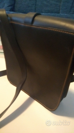 Borsa tracolla nera in pelle con cuciture marrone, Saffi 25 by Sergio Tacchini. Misura 20x19x4.