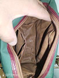 Borsa in materiale con inserti in ottone e pelle vera Anno di produzione 1991 con la targhetta originale del proprietario (se la volete )