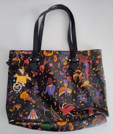 Borsa tote con un vivace e originale pattern. - Manici in pelle nera. - Chiusura con zip. - Charm a forma di stella applicato.