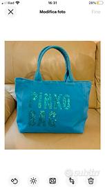 Borsa Pinko.Vendo borsa Pinko Bag originale in tessuto turchese , tipologia a mano comprensiva di tracolla removibile. Chiusura a bottone,tasche interne misure : H27 L42 P12