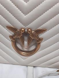 come da foto e descrizione vendo splendida borsa bianca Pinko in pelle utilizzata poche volte con relative misure di lunghezza e larghezza.......molto comoda e pratica....utilizzatabile sia a tracolla che a spalle