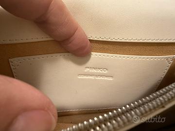 Borsa Pinko Love one mini tracolla bianca e silver composta da unico scomparto diviso a metà da ulteriore tasca con cerniera. Color bianco panna.