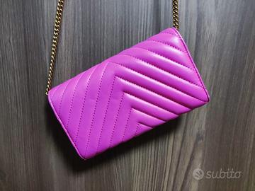 Borsa tracolla Pinko in vera pelle colore fucsia.