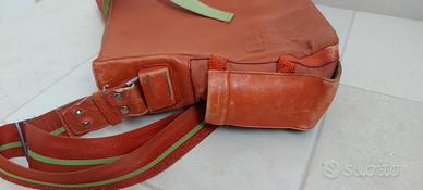 borsa tracolla PIQUADRO originale in pelle arancione e poliestere x lavoro porta PC Usata con segni di usura ma in buono stato misure 40x30x9cm.