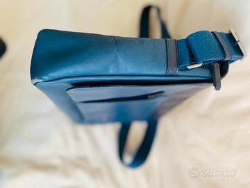 Vendo borsa Piquadro originale in pelle blu, elegante e funzionale, ideale per lavoro, università o uso quotidiano. Ha una forma pratica, tracolla regolabile, tasca frontale esterna e interno ben organizzato con fodera logata Piquadro. Le dimensioni sono 27 x 33 x 8 cm, quindi una misura comoda per portare documenti, tablet o piccoli oggetti personali senza risultare ingombrante. La borsa è in buonissime condizioni generali, come nuova. Presenta solo un angolo in basso leggermente usurato come si vede in foto ma non visibile. Caratteristiche: •Marca: Piquadro •Materiale: pelle •Colore: blu •Dimensioni: 27 x 33 x 8 cm •Tracolla: regolabile •Modello interno: IV 4406 •Condizioni: molto buone