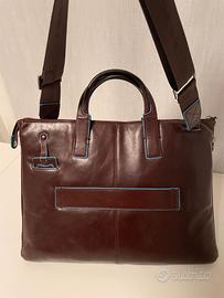 Borsa Piquadro (Linea Blu Square) in vera pelle color mogano con inserti color turchese.