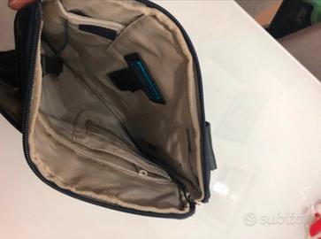 Borsa a tracolla Piquadro blu con tasca imbottita all’interno