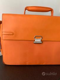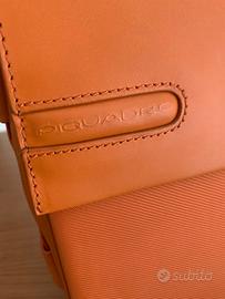 Cartella da lavoro PIQUADRO rigida, in vera pelle e tessuto tecnico impermeabile colore cognac /arancio.