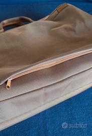Borsa PiQuadro porta computer PC notebook laptop. Robusta e pratica borsa per notebook/ laptop. Dotata di maniglia e tracolla. Vano imbottito per l'alloggiamento di notebook 15". Vano interno con tasche. Un piccolo scomparto laterale Vano posteriore apribile per essere fissato al trolley Materiale misto: tela e pelle. Colore: beige DImensioni esterne approssimative: 42 x 30 x 10 cm Mai usata. Visto e piaciuto.