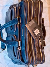 Vendo borsa porta PC professionale, colore blu, compatibile con laptop fino a 15,6 pollici. L'articolo è un regalo ricevuto e mai utilizzato, ancora etichette originali presenti. Caratteristica principale è il sistema a soffietto che permette di espandere la capacità interna, rendendola perfetta sia per l'ufficio che per brevi viaggi di lavoro. Compatibilità: Laptop fino a 15.6" + scomparto tablet. Stato: mai usato. Caratteristiche: Materiale in pelle impermeabile, numerose tasche organizzate, fascia per inserimento su trolley e spallacci ergonomici. Dimensioni: 41.0 x 30.5 x 16.0 / 20.0 (cm)